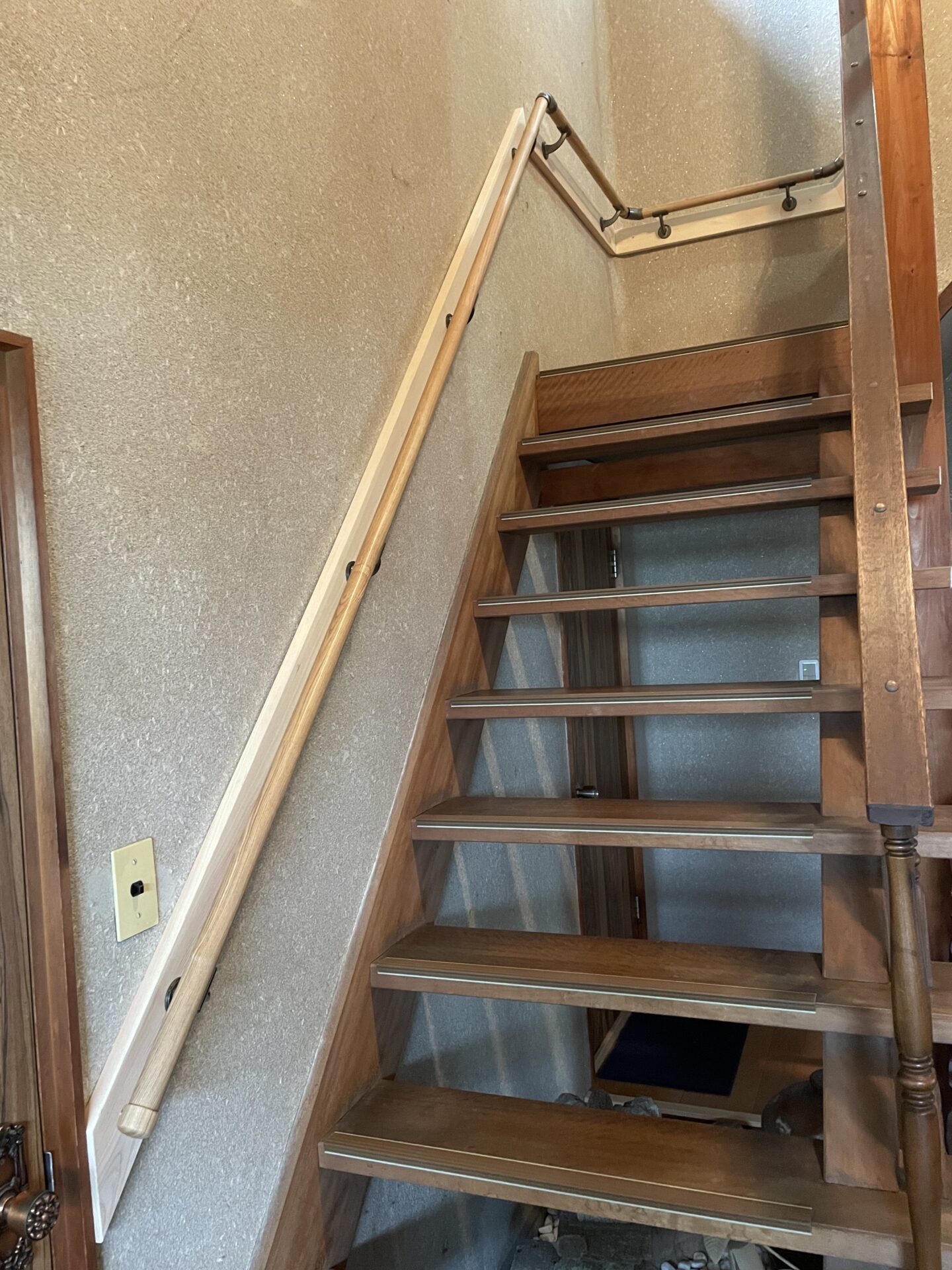 握りやすく、温かみのあるデザインで、K様の身体に負担なく安心して昇降できるよう配慮しました。