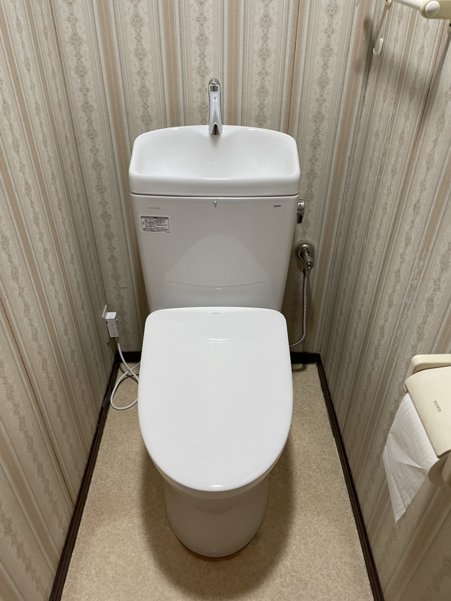 今回は、TOTOの組み合わせ便器「ピュアレストQR(手洗い付きリトイレ)」と温水洗浄便座「アプリコットF1A」を設置しました。
