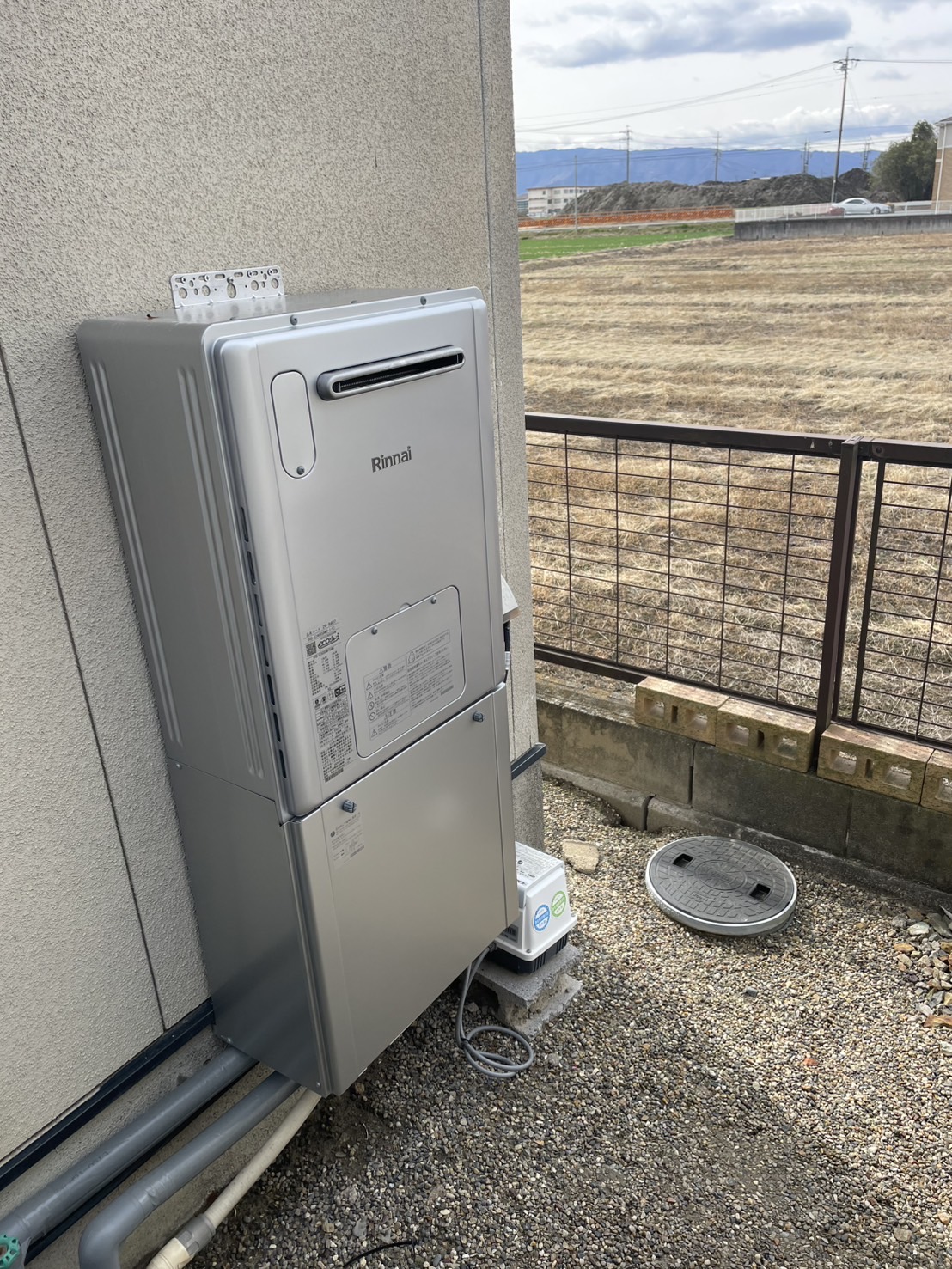 設置機器: リンナイ製 ガス給湯暖房用熱源機 RVD-E2405SAW2-1 (24号・オートタイプ・屋外壁掛形)