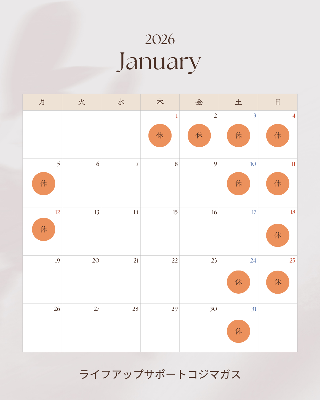 年始の休業日など、ご来店・お問い合わせの際は事前にご確認ください。