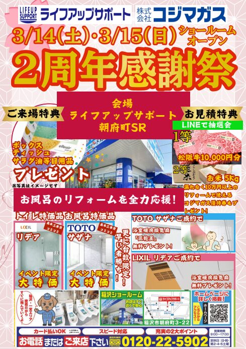 おかげさまで、ライフアップサポートコジマガス稲沢朝府ショールームはオープン2周年を迎えることができました!