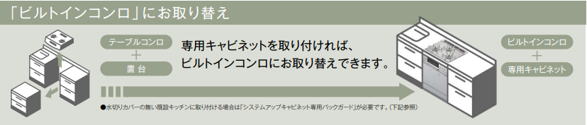 【実は!】 今が「据置コンロ」の方でも、専用の台(キャビネット)を組み合わせることで、