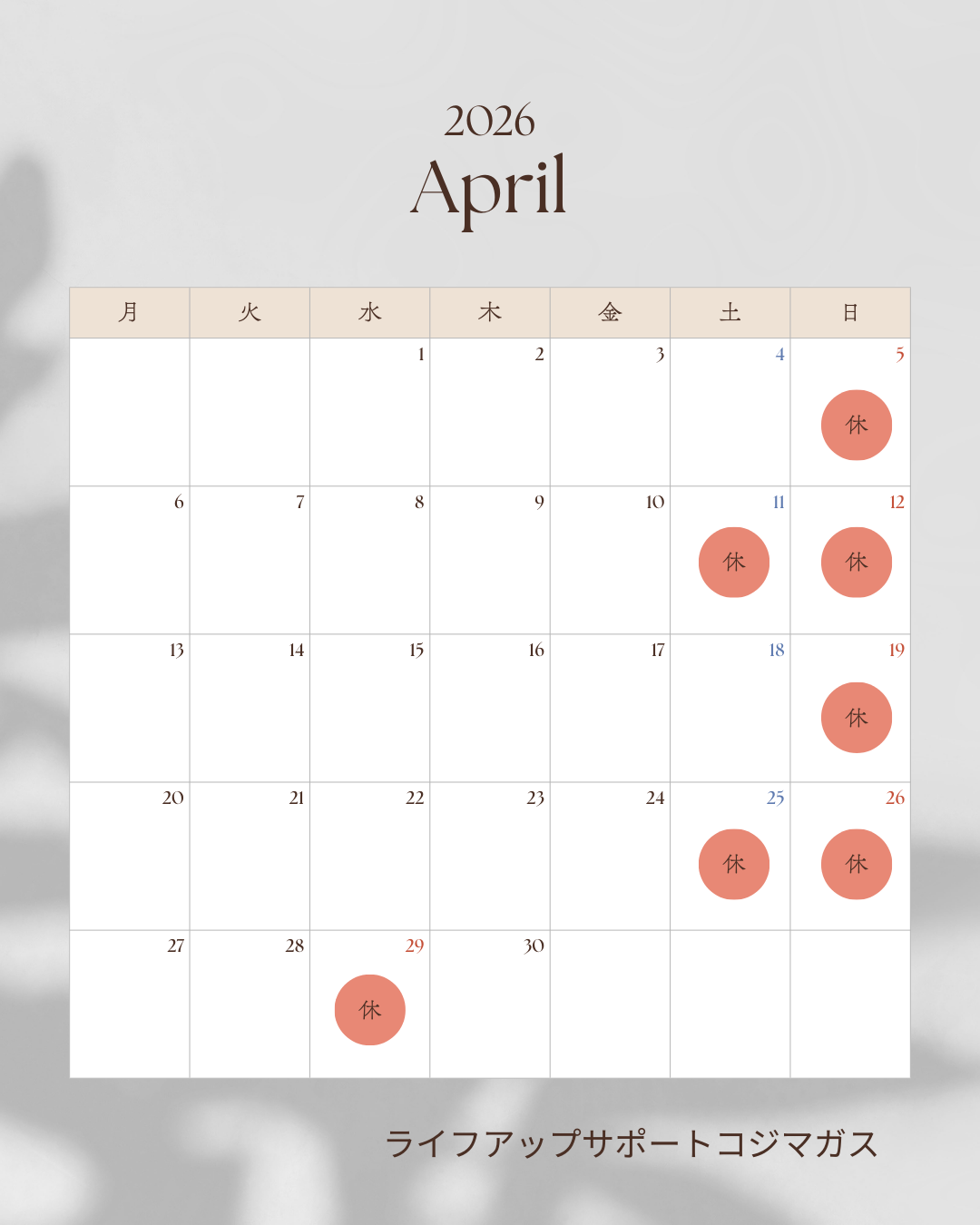 4月営業日のご案内です