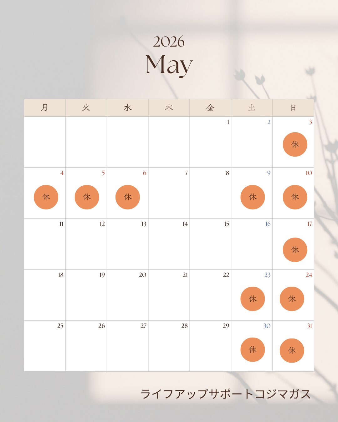 5月営業日のご案内です