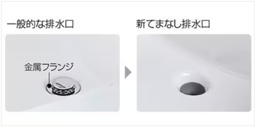 ◎昔の排水口にあった「金属の輪っか(フランジ)」がありません(フランジレス排水口)